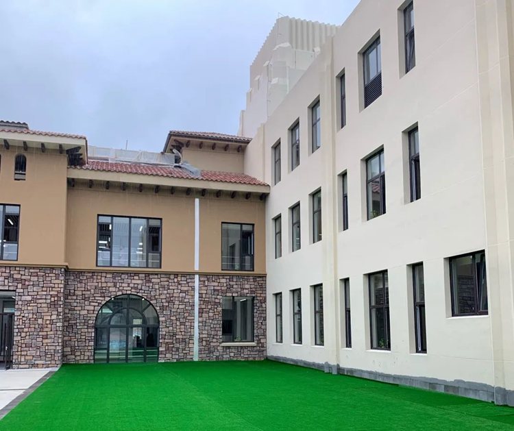 中心校區(qū)借鑒美國(guó)斯坦福校區(qū)設(shè)計(jì)特點(diǎn),具有典型的西班牙建筑元素及特征,與已經(jīng)建成的嘉匯橡樹(shù)外國(guó)語(yǔ)學(xué)校渾然一體,彰顯了學(xué)校的國(guó)際性、開(kāi)放性和包容性。