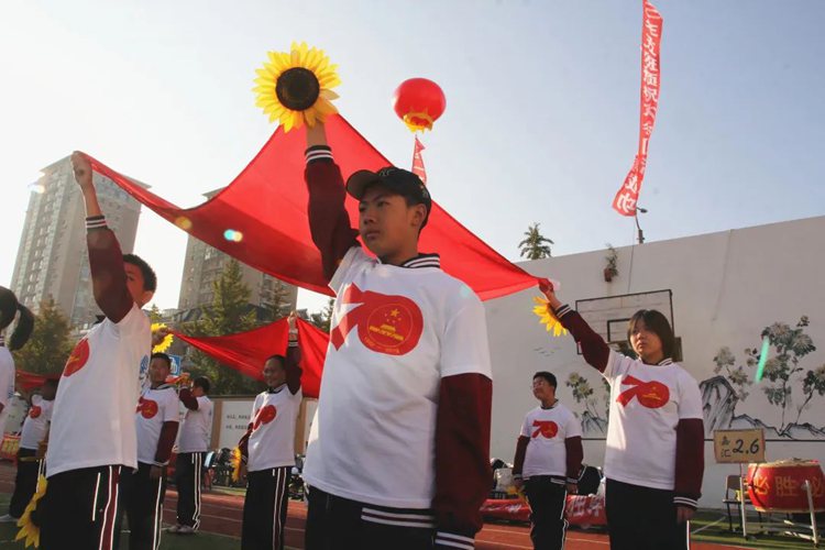 10 、 9 、 8 、 7……1!在主持人的帶領(lǐng)下,全校師生共同為運(yùn)動會倒計時。當(dāng)張校長宣布運(yùn)動會開幕的那一刻,24 面彩旗帶著嘉匯精神在藍(lán)天下一起招展飛揚(yáng);成群的和平鴿帶著我們對未來和平的呼喚飛向藍(lán)天;五彩繽紛的氣球懷揣我們對未來無限的期待飄向藍(lán)天。藍(lán)天下,我們?yōu)樽约汗恼?、為嘉匯鼓掌、為祖國驕傲!