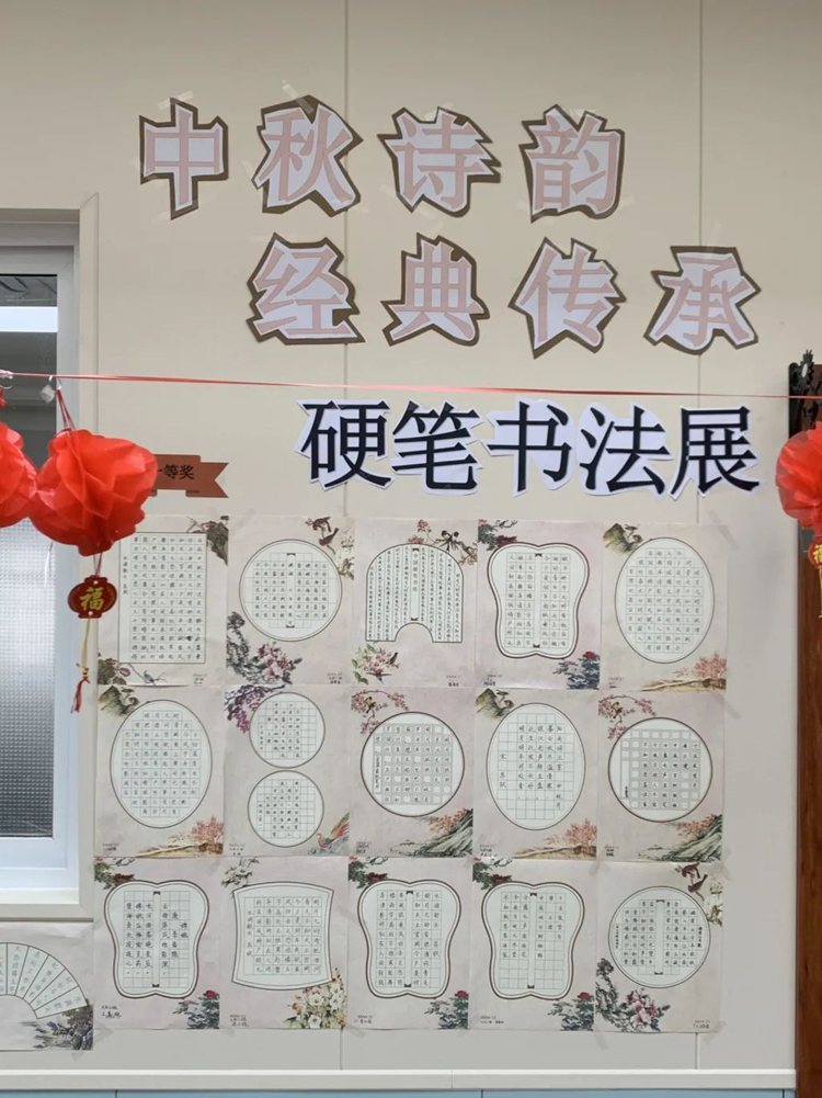 硬筆書法以中秋詩歌為主題,學生們聽著高山流水的音樂,個個絕慮凝神,心正氣和,將身心融于筆端,所寫作品或有勁大氣,或飄逸瀟灑,或娟秀玲瓏,發(fā)揚了漢字的藝術(shù)特色。