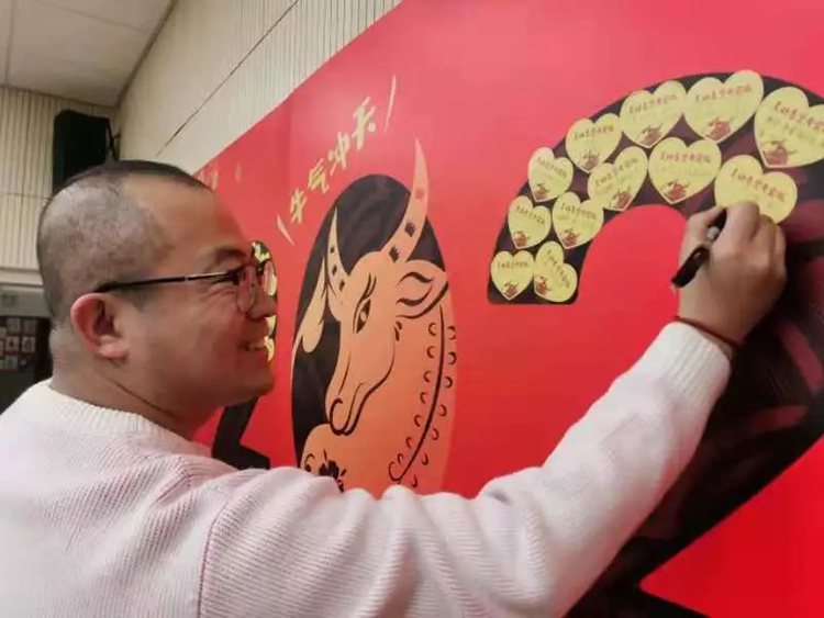 「恭喜恭喜中國年,五谷豐登笑開顏;恭喜恭喜中國年;歌聲萬里連成片;歡樂歡樂中國年;歡歌笑聲連成片;歡樂歡樂中國年;紅紅火火到永遠」 伴著 《歡樂中國年》 的響起,禮物開始傳遞,教師們握著手中的新年禮物,無論是紅彤彤的小牛鑰匙扣、胖乎乎的小奶牛,本命年專屬的大牛,還是香香的熟食,圓圓的饅頭。我們都知道,這不是簡單的禮物,而是對 2021 的祈愿,此時此刻,一切的快樂與感恩都化作前行的動力!