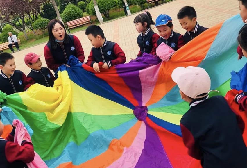 春游時(shí),一起游戲最快樂(lè)。微風(fēng)過(guò),笑聲漾。陽(yáng)光、春風(fēng)、美食,還有一群群歡樂(lè)的小朋友歡快地游戲。