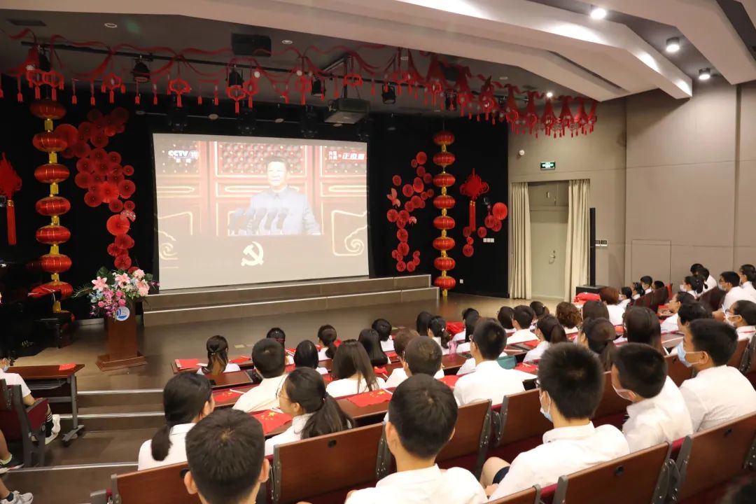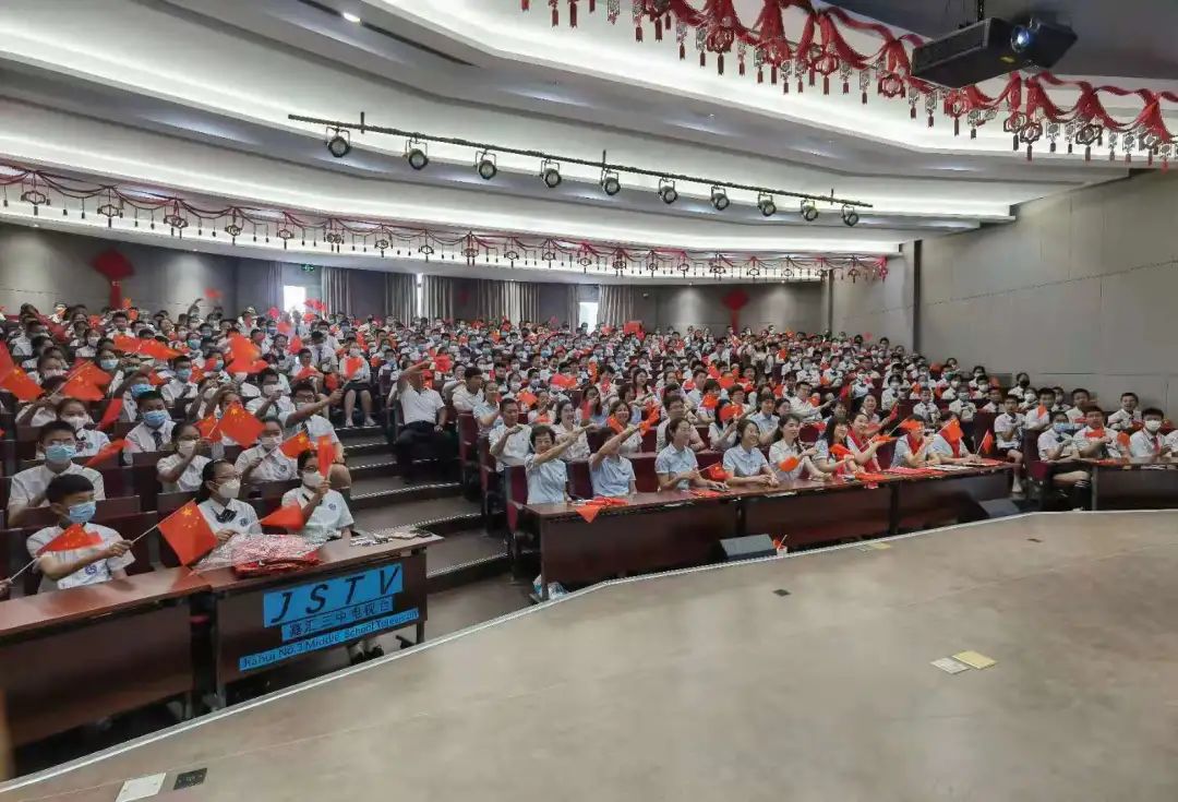 八時許,在北京天安門的廣場上,戰(zhàn)鷹飛過蔚藍(lán)的天空,將最美的祝福送給黨!與此同時,嘉三全體師生也在階梯教室和和班級教室共同觀看了慶祝中國共產(chǎn)黨成立 100 周年大會的直播。在觀看中,師生們聚精會神,時時掌聲雷動,手中的紅旗也隨著心中的澎湃之情自發(fā)的揮舞。