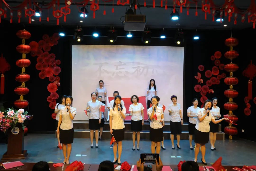 風(fēng)雨百年,波瀾壯闊,青史可鑒。楊怡雯、常佳樂、李明娣、石翠紅等黨員教師共唱歌曲 《不忘初心》 。
