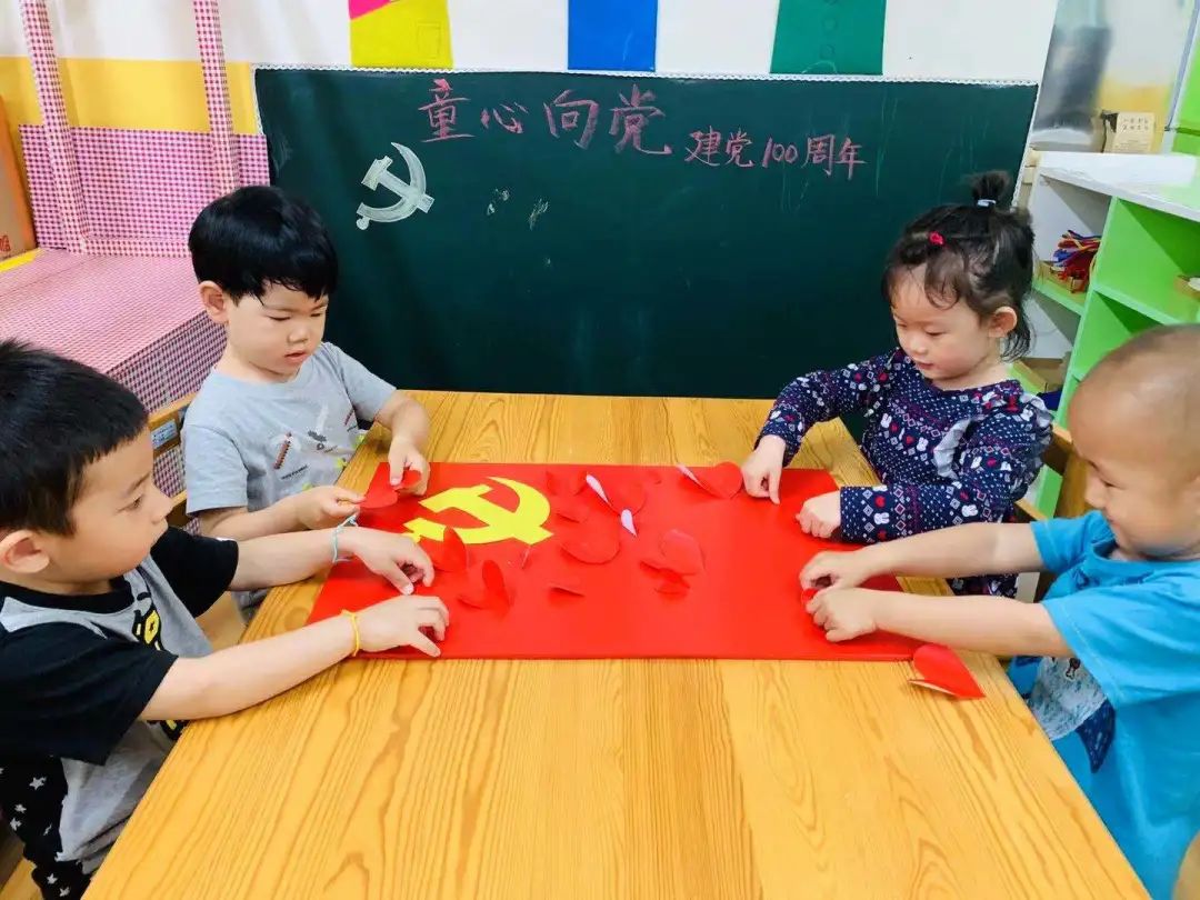 2021 年是中國共產(chǎn)黨建黨 100 年,為紀念建黨百年,進一步引導(dǎo)幼兒感恩黨、心向黨、跟黨走。嘉匯諾維溪谷幼兒園在全園掀起 「不忘初心,童心向陽」 一百周年的紅色氛圍,開展獻禮建黨一百周年主題活動。