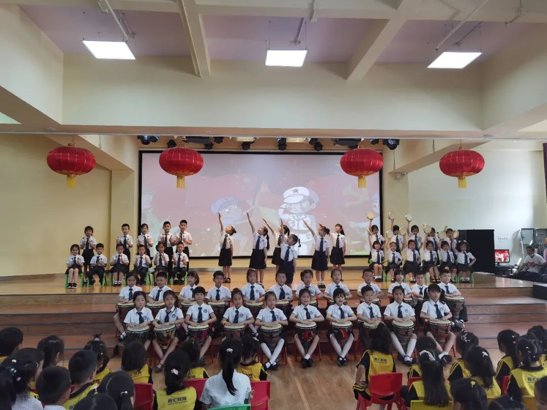一曲 《閃閃紅星》 打開了今天慶典的序幕,伴著鼓點(diǎn)的節(jié)奏,聽著鈴鼓的響動(dòng)。孩子們聚精會(huì)神,感受閃閃紅星的力量。