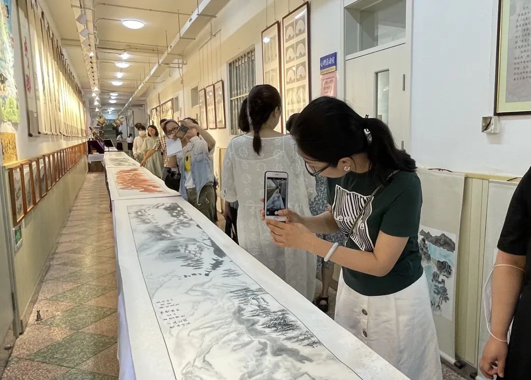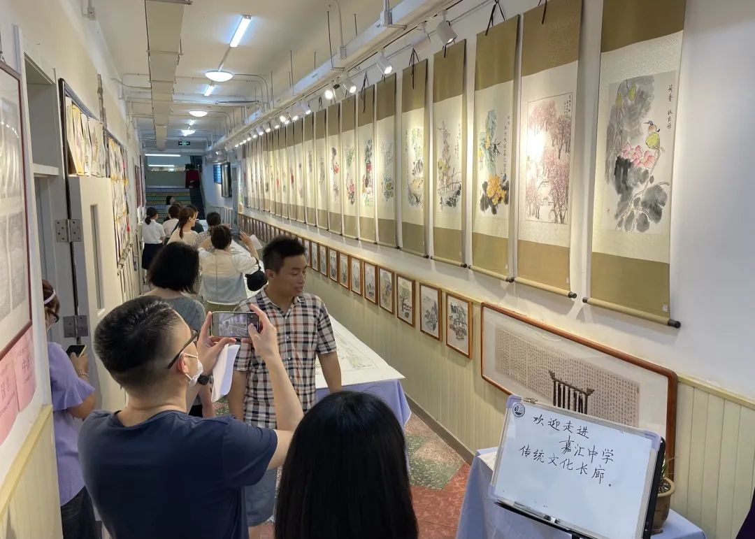 教學(xué)樓內(nèi)琳瑯滿目、層次分明地展示了全校同學(xué)的美術(shù)作品,這些作品既充分體現(xiàn)了嘉匯中學(xué)國畫教學(xué)特色,又展現(xiàn)了素質(zhì)教育下同學(xué)們對不同美術(shù)形式的了解與探索,讓來賓們深感震撼。