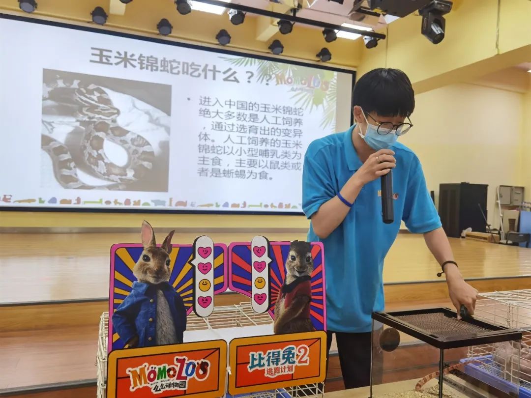 么么動(dòng)物園的小哥哥給小朋友講解了各種小動(dòng)物的習(xí)性和特點(diǎn),有垂耳兔、鼯鼠、玉米錦蛇、倉(cāng)鼠、大蜘蛛,孩子們聽(tīng)得都入迷啦!