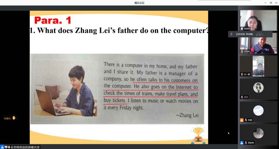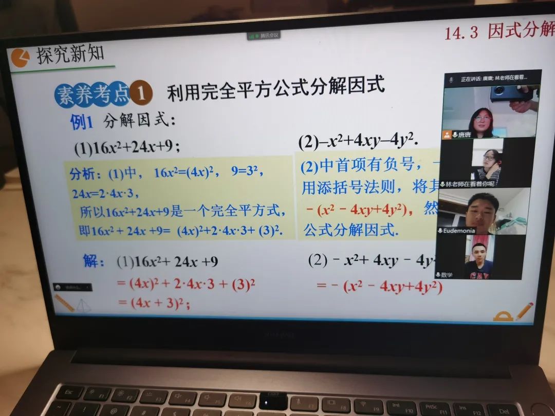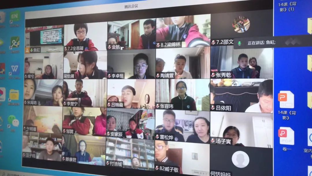 各班級第一時間召開家長會,安撫家長和學生們的焦慮情緒,強調了上網課的具體要求,家校攜手攻克難關,助力學生抓住網課的機會,于困局中破局。線上課采用騰訊會議的方式,班主任提前一天將會議號發(fā)到群里,便于學生操作。
