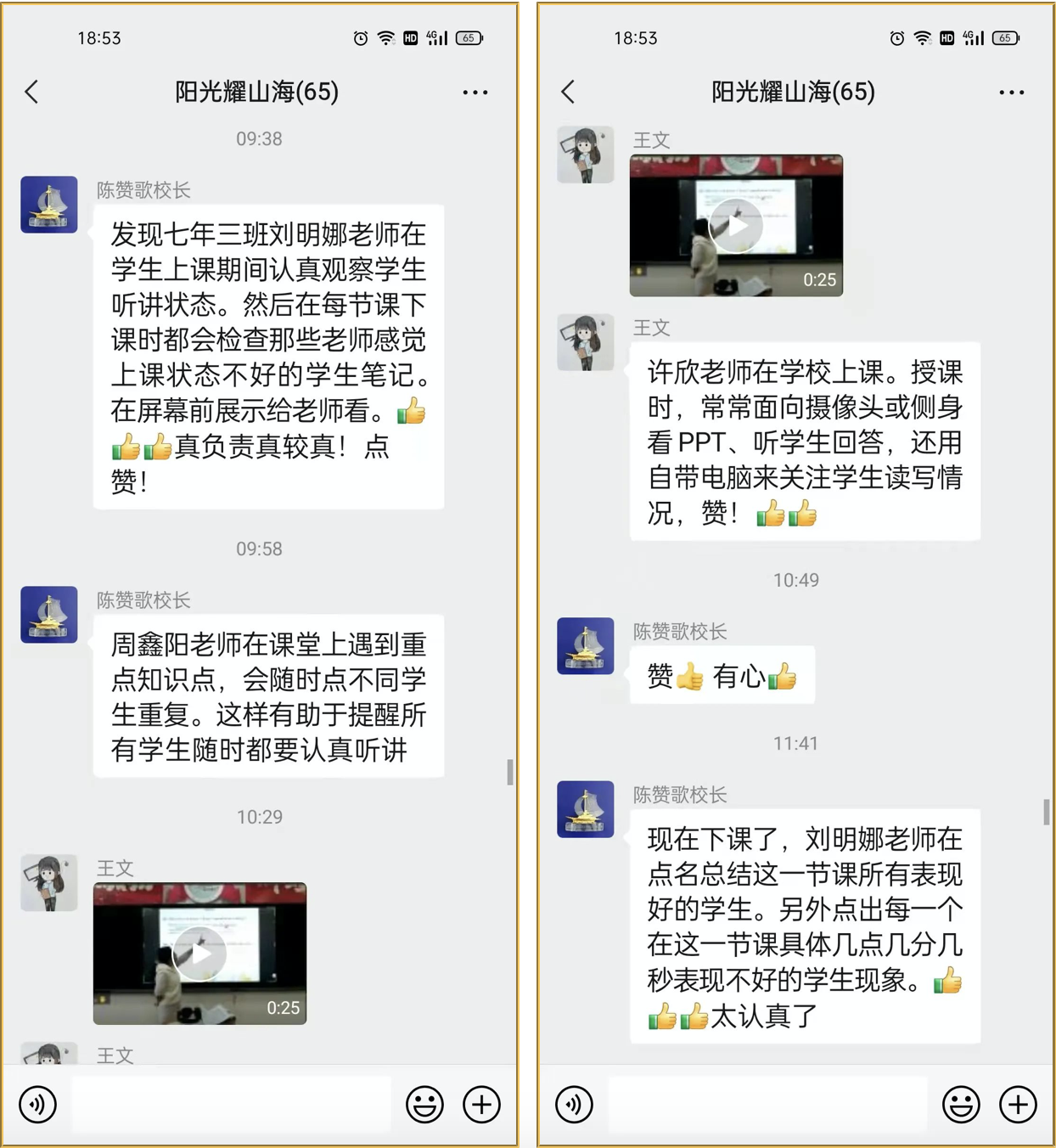 領導班子成員分工合作,全員全天候進入到每個班級聽課,隨時觀察老師和學生的狀態(tài),并對上課效果進行評價和反饋,隨時提醒老師和助教調整影響課堂效果的各項細節(jié)。