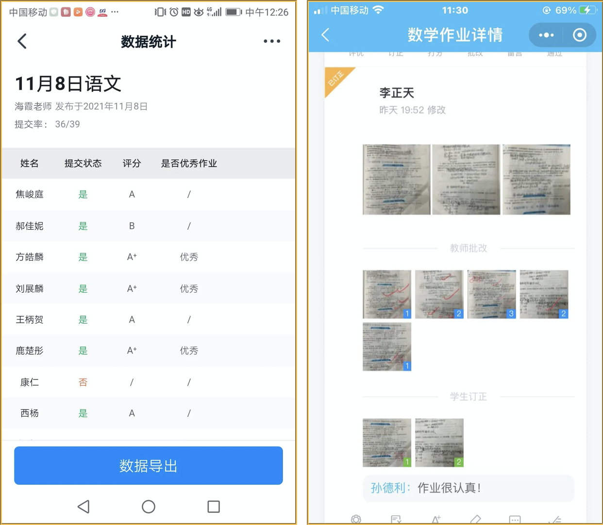 班主任隨時將學生網課表現與家長溝通,時刻關注到每個孩子的上課狀態(tài)