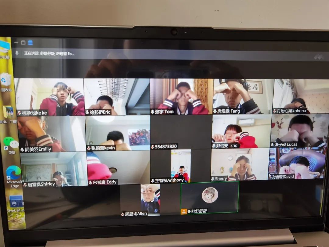 王府外國語初中體育組每天安排體育鍛煉內(nèi)容,規(guī)范體育鍛煉標(biāo)準(zhǔn)。運(yùn)用騰會(huì)議分組功能,以小組為單位保障學(xué)生做好眼保健操和體操,并且設(shè)置組長,對(duì)于難點(diǎn)動(dòng)作錄制視頻細(xì)致講解,利用微信群分享,時(shí)事監(jiān)控,督促,總結(jié)。