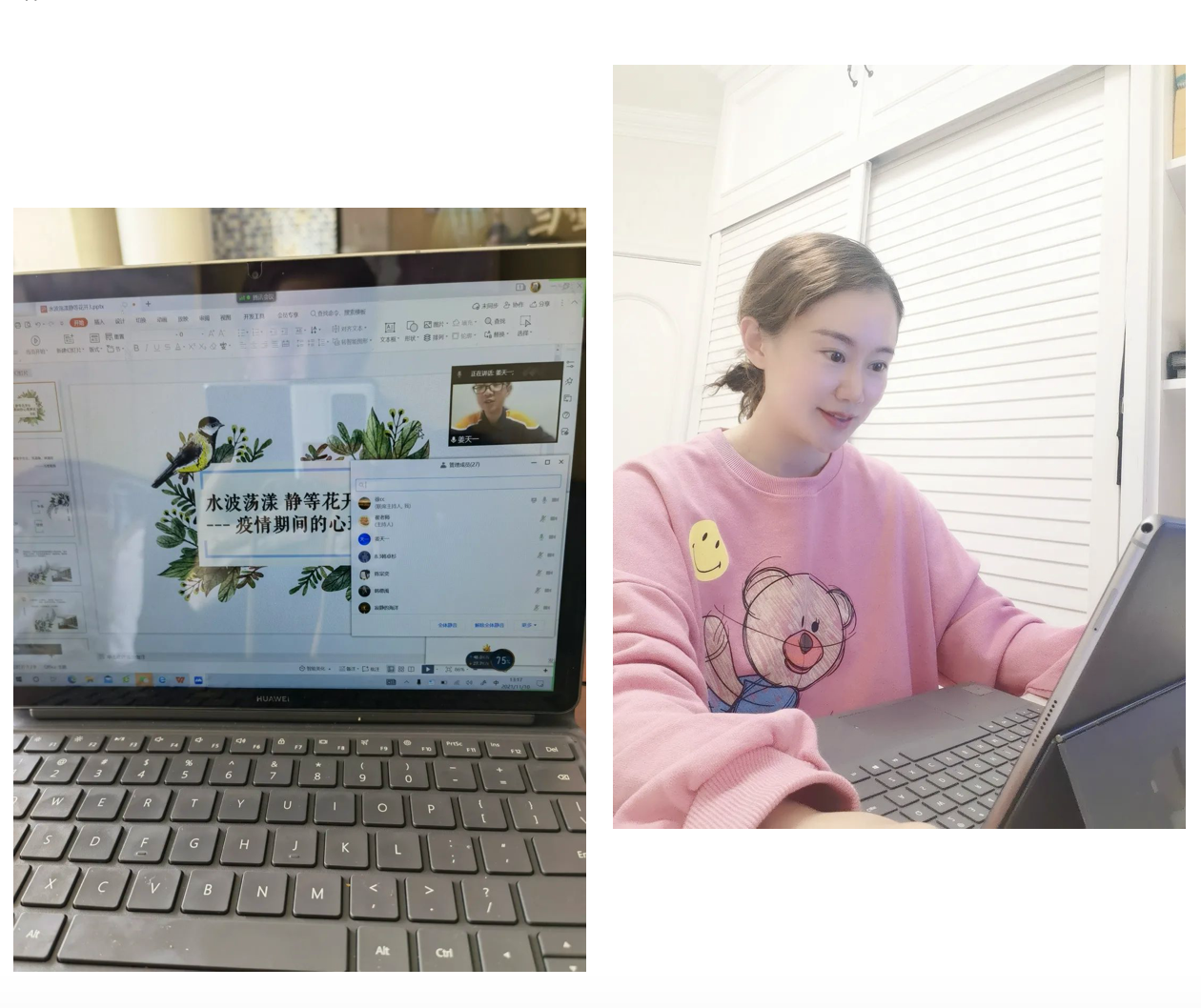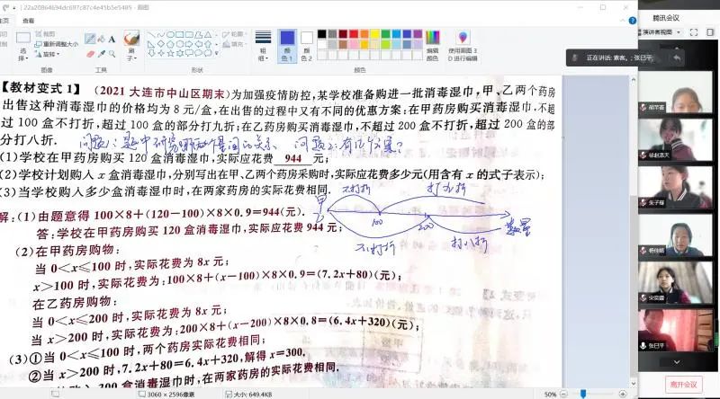 線上批改絕不馬虎,英語課上,老師運(yùn)用騰訊會(huì)議批注功能,批改仔細(xì),絕不亞于平時(shí)上課。語文課,老師結(jié)合時(shí)事政事,繪聲繪色的向同學(xué)們講述作文寫作;理化組、小科組用精美的 ppt 演示,讓同學(xué)們沉浸在豐富的課堂內(nèi)容當(dāng)中。