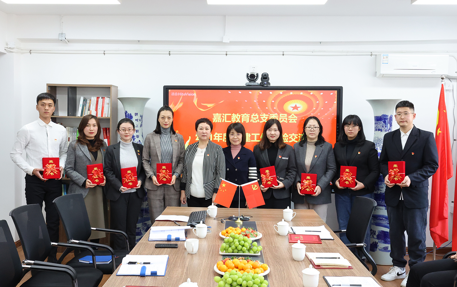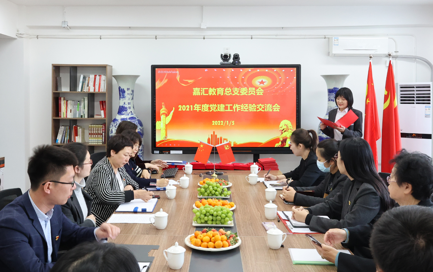 黨總支副書記方芳同志全面回顧了 2021 年嘉匯教育黨建工作情況并部署了 2022 年黨建工作。 2021 年,基層組織建設(shè)再上新臺階,總支下屬機(jī)關(guān)支部及拙璞支部累計(jì)收到入黨志愿書 30 余份,發(fā)展預(yù)備黨員 11 名;黨課學(xué)習(xí)引領(lǐng)黨員進(jìn)步,「七一」 前夕,邀請大連海軍艦艇學(xué)院劉永路教授講授主題黨課,效果反響強(qiáng)烈;雙擁共建,將軍民攜手落到實(shí)處,在 「八一」 建軍節(jié)前夕,舉辦 「軍民攜手、嘉書共讀」 雙擁共建活動;勇?lián)鐣?zé)任,爭做志愿標(biāo)桿。嘉匯教育全體黨員積極抗疫,在保證線上教學(xué)的前提下,多次參與志愿者服務(wù)活動。 2022 年將從強(qiáng)化理論武裝,夯實(shí)黨建基礎(chǔ);加強(qiáng)動態(tài)管理,掌控黨員現(xiàn)狀;嚴(yán)把 「入口關(guān)」,確保黨員隊(duì)伍質(zhì)量;以黨建促教育,「黨、團(tuán)、隊(duì)」 同心同行;狠抓意識形態(tài),加強(qiáng)輿論引導(dǎo);履行社會責(zé)任,安全助力教育六方面加強(qiáng)黨建工作。