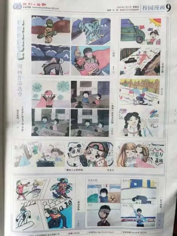 近日由美術(shù)沈穎老師組織指導(dǎo)的 「執(zhí)筆描輪廓 用愛繪世界」 的四聯(lián)漫畫主題活動,嘉匯陽光學(xué)校七年一班董千吉 《奪冠》 、七年二班徐藝菲 《奪冠之路》 、七年三班由好 《永不放棄》 和七年六班劉舒祺 《我有一雙很丑的腳》,共四幅作品入選 7 月 1 日人民日報漫畫增刊——《諷刺與幽默》 的校園漫畫專欄。