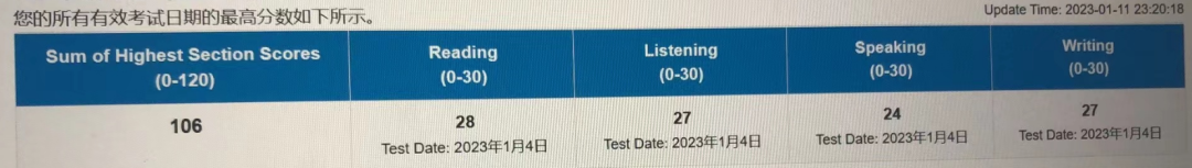 大連王府外國(guó)語(yǔ)學(xué)校雙語(yǔ)班再傳捷報(bào),9 年 6 班邵川寧同學(xué),在托福首考中取得了 106 分 (滿分 120) 的優(yōu)異成績(jī),中國(guó)學(xué)生最難拿分的寫(xiě)作單項(xiàng)達(dá)到 27 分 (滿分 30),這對(duì)于一個(gè)初三的學(xué)生來(lái)講實(shí)屬難得,這跟學(xué)生自身的努力和老師們的精心培養(yǎng)是分不開(kāi)的。