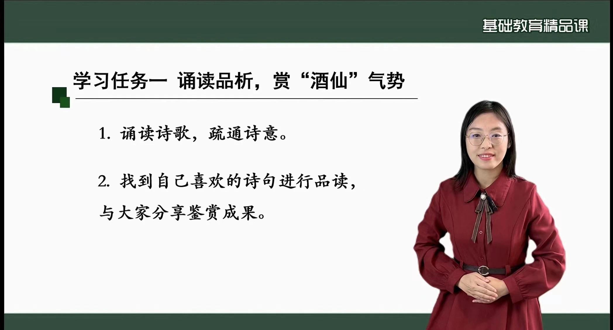 近日,教育部公布 《2023 年 「基礎教育精品課」 遴選部級精品課名單公示》,大連王府高級中學語文教師劉姝所授統(tǒng)編版高中語文選擇性必修上冊 《將進酒》 課例獲評高中語文 「部級精品課」 。這是遼寧省高中語文 4 個入選課例之一。