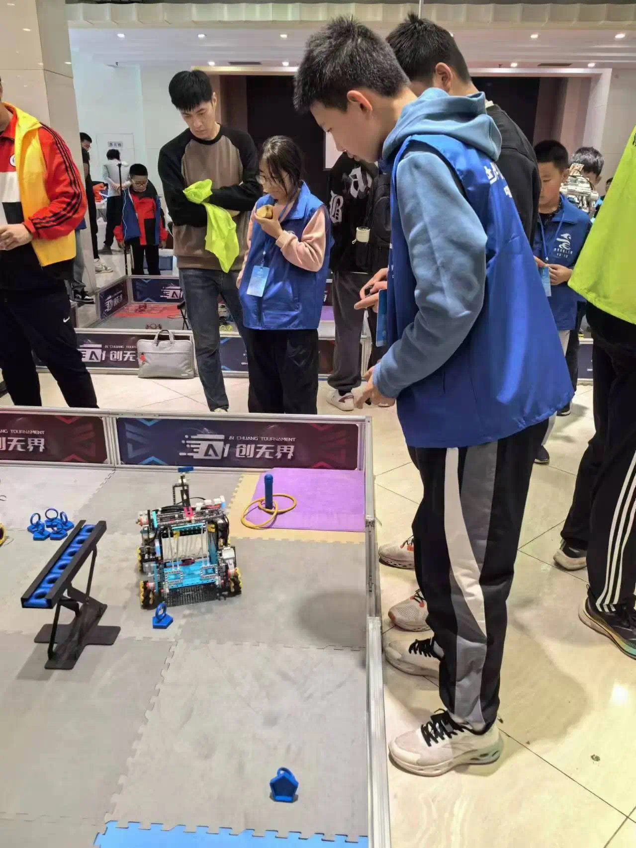 嘉匯三中八年五班學(xué)生侯驍雋在比賽過(guò)程中展現(xiàn)出過(guò)硬的操作水平與一顆 「大心臟」,通過(guò)他的不懈努力,最終成功捧起了冠軍的獎(jiǎng)杯。比賽現(xiàn)場(chǎng),一臺(tái)臺(tái)機(jī)器人仿佛成了未來(lái)戰(zhàn)士,它們或穿梭在復(fù)雜的賽道上,或執(zhí)行著精準(zhǔn)的任務(wù)。觀(guān)眾們驚嘆于這些機(jī)器人的智能與高效,更被參賽者們對(duì)科技的熱愛(ài)和執(zhí)著所感動(dòng)。