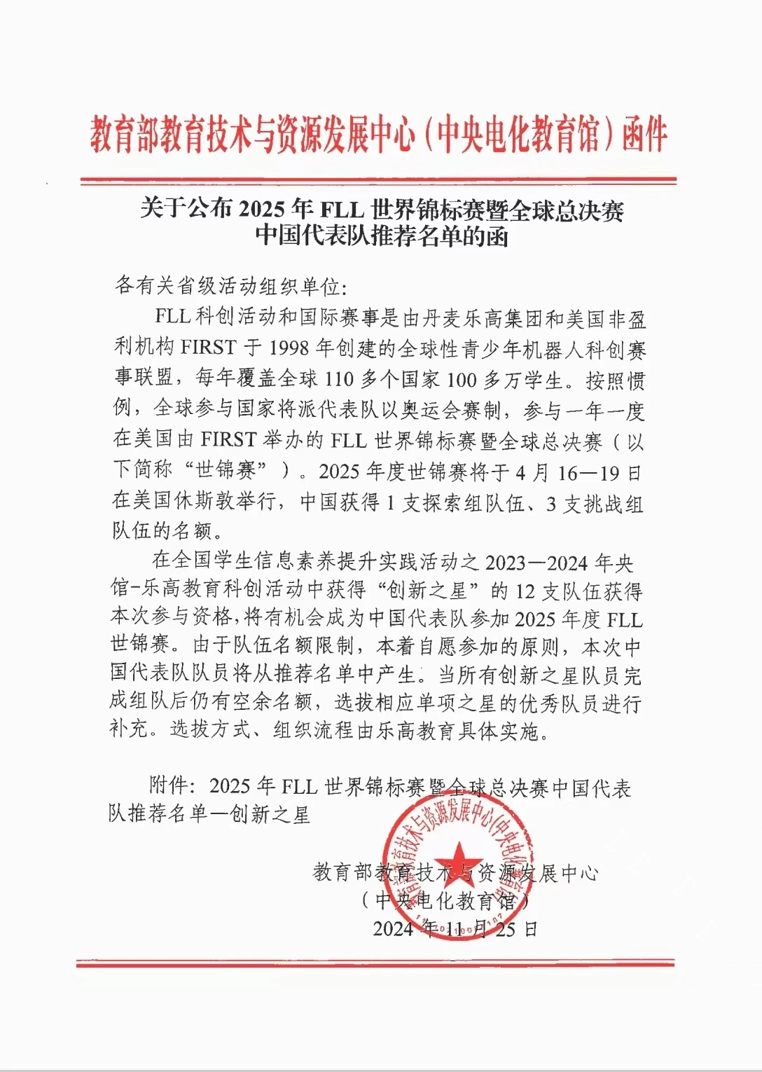 嘉匯陽(yáng)光學(xué)校小學(xué)部學(xué)生劉以敖、孫格興牧、王苜熙、王譽(yù)銜在 2024 年 7 月舉行的第二十五屆全國(guó)學(xué)生信息素養(yǎng)提升實(shí)踐活動(dòng)之央館-樂高教育科創(chuàng)活動(dòng)中,榮獲 FLL 探索項(xiàng)目全國(guó)交流等級(jí)獎(jiǎng)項(xiàng) 「創(chuàng)新之星」 。?經(jīng)教育部教育技術(shù)與資源發(fā)展中心推薦,4 名同學(xué)入選中國(guó)國(guó)家代表隊(duì),有機(jī)會(huì)參加一年一度在美國(guó)由 FIRST 舉辦的 FLL 世界錦標(biāo)賽暨全球總決賽。