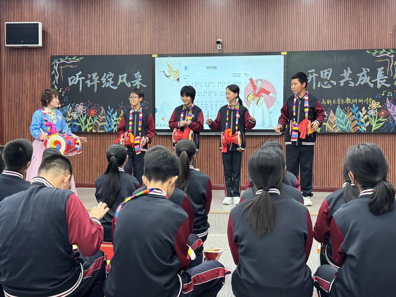 高新區(qū)一中學(xué)的習(xí)老師帶來人音版七年級 《阿里郎》,以 「解碼朝鮮民歌的獨特魅力」 為教學(xué)目標(biāo),層層遞進引導(dǎo)學(xué)生深度感知。