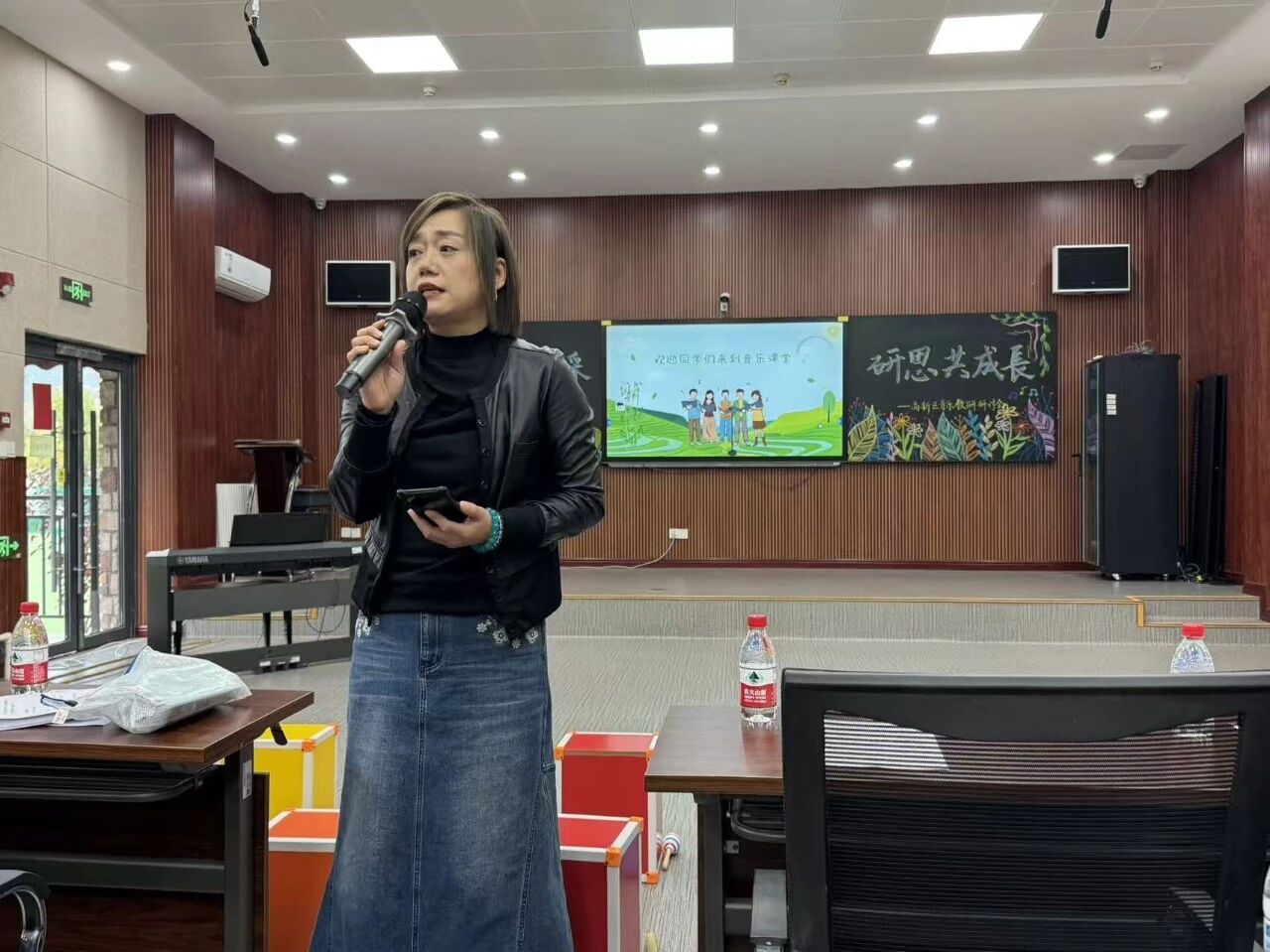 教研員呂老師結(jié)合課例進行深度點評,既肯定了授課教師的亮點 —— 如 「關(guān)注學(xué)生主體地位」「注重音樂體驗的層次性」,也針對教學(xué)細節(jié)提出優(yōu)化建議:「在節(jié)奏教學(xué)中,可以增加 『學(xué)生自主創(chuàng)編節(jié)奏型』 的環(huán)節(jié),進一步培養(yǎng)學(xué)生的音樂創(chuàng)造力;在民族音樂教學(xué)中,可結(jié)合地域文化資源,讓學(xué)生更貼近本土音樂傳承。」 同時,教研員還圍繞 「如何在音樂課堂落實審美感知、藝術(shù)表現(xiàn)、文化理解三大核心素養(yǎng)」 進行專題分享,從教學(xué)目標(biāo)設(shè)定、教學(xué)活動設(shè)計、評價方式優(yōu)化等方面給出具體指導(dǎo),為老師們后續(xù)教學(xué)提供了清晰的方向。