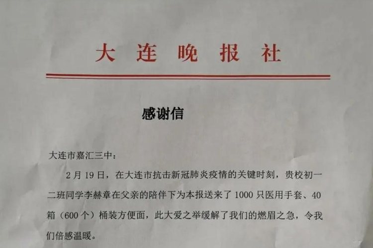 在大連市抗擊新冠肺炎疫情的關(guān)鍵時(shí)刻,我校初一二班李赫章同學(xué)在父親的幫助下用自己的…