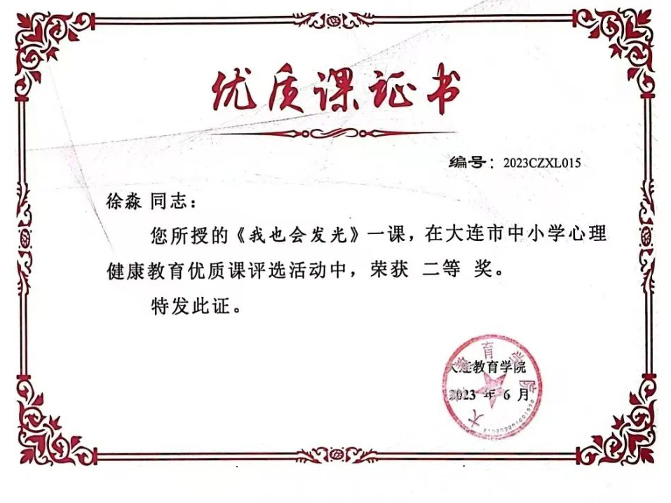 大連王府初中心理課榮獲大連市心理健康優(yōu)質(zhì)課比賽二等獎