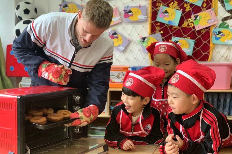 優(yōu)質(zhì)的師資隊(duì)伍是辦園質(zhì)量的保障,良好的用人機(jī)制和園所文化使各園區(qū)擁有一支高素質(zhì)、高水準(zhǔn)的教師團(tuán)隊(duì)。教科研團(tuán)隊(duì)由加州大學(xué)碩士帶領(lǐng),國(guó)內(nèi)外知名學(xué)府畢業(yè)的專家學(xué)者組成。教師團(tuán)隊(duì)配有 14 名專職外籍教師,均持有 TEFL 資格證,具備豐富的海外和國(guó)內(nèi)教學(xué)經(jīng)驗(yàn)。中籍教師學(xué)歷均為本科以上,持有教師資格證。其中,畢業(yè)于國(guó)內(nèi)知名高校的體育專項(xiàng)男性教師拼借出色專業(yè)技能協(xié)調(diào)、融合了學(xué)前教師性別比例,助力學(xué)前和諧、穩(wěn)定發(fā)展。海外知名高校畢業(yè)的歸國(guó)園長(zhǎng)與英語(yǔ)專項(xiàng)教師為學(xué)前英語(yǔ)課程及國(guó)際化發(fā)展保駕護(hù)航。